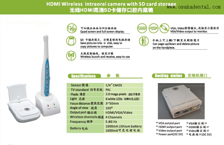 OSA-M980SDW, cámara bucal dental con salida VGA+Video