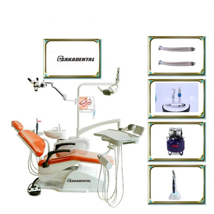 Pieza de mano de alta velocidad --- 2 piezas Pieza de mano de baja velocidad --- 1 juego Luz de curado de aluminio incorporada --- 1 piezas Escalador LED incorporado --- 1 juego Camello oral de 17 pulgadas con monitor --- 1 juego Tipo de instalación Unidad de blanqueamiento --- 1 juego Compresor de aire de 550 vatios --- 1 piezas Instalar tipo microscopio --- 1 piezas .........
