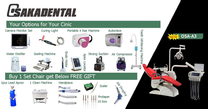 Osakadent Co., Ltd. es el proveedor profesional de equipos dentales. Osakadental es una marca famosa en el campo dental. El 95% de nuestros productos ya obtienen el certificado CE, ISO, algunos de ellos tienen el certificado de la FDA. Nuestro equipo de ventas es profesional y responsable.