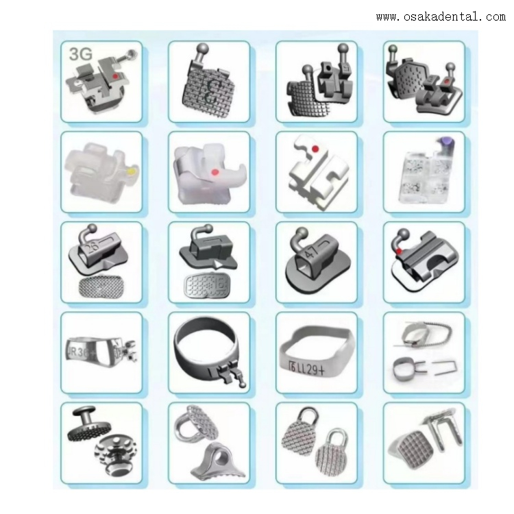 Diferentes tipos de soportes y accesorios de ortodoncia dental