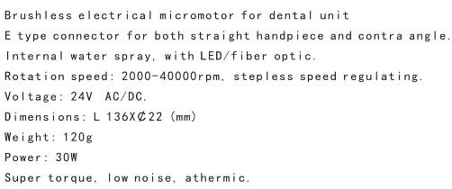 Usted está aquí: Hogar » Productos » Pieza de mano dental » Pieza de mano dental contra ángulo » Motor eléctrico dental sin escobillas (tipo incorporado)
