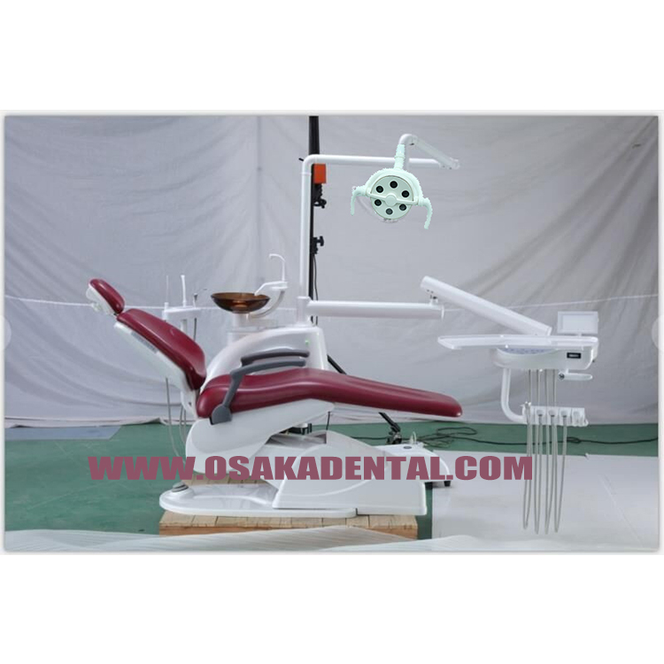 ESPECIFICACIÓN Tubo de pieza de mano de alta velocidad con conector 2 agujeros / 4 agujeros 2 JUEGOS Tubo de pieza de mano de baja velocidad con conector 2 orificios / 4 orificios 1 SET Jeringa de 3 vías fría y caliente 1 SET Succión de agua 1 SET Eyector de saliva 1 SET Lámpara de operación halógena 1 SET X-film viewer 24V 1 SET Reposacabezas ajustable 1 SET Sistema de calefacción y agua purificada 1 SET Escupidor movible de vidrio / cerámica 1 SET Pedal redondo simple 1 SET Cojín sanitario sin costuras YES Bandeja auxiliar SÍ Apoyabrazos doble SÍ Taburete de dentista 1 SET