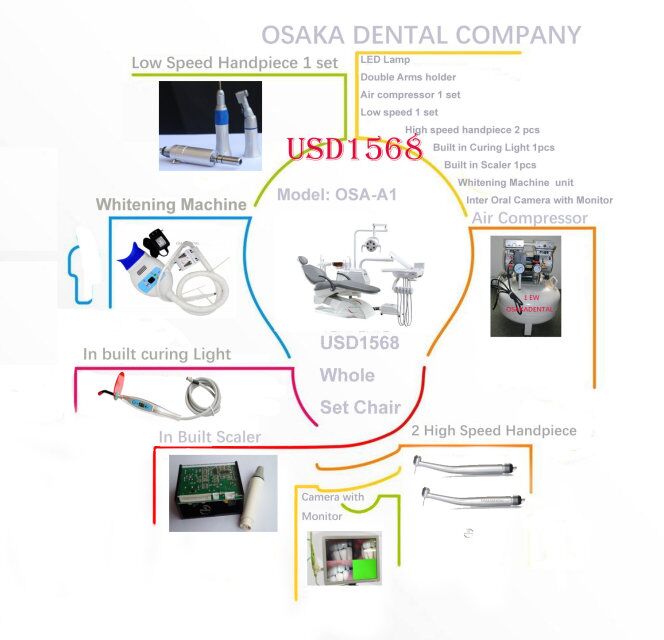 VENTAJAS Luz LED en el gabinete, más conveniente para verificar la máquina, otras fábricas no tienen Película X con sensor, otras fábricas no tienen 3 momeries 6 luces LED, si 4 luces LED, reduzca $ 20 por favor Panel de control auxiliar con portaherramientas de 4 ranuras Pedal multifuncional ESPECIFICACIONES Tubo de pieza de mano de alta velocidad con conector 2 agujeros / 4 agujeros 2 JUEGOS Tubo de pieza de mano de baja velocidad con conector 2 orificios / 4 orificios 1 SET Jeringa de 3 vías agua fría y caliente 1 SET Succión de agua 1 SET Eyector de saliva 1 SET Lámpara de operación 4 LED 1 SET X-film viewer 24V, con sensor 1 SET Posición ajustable con 3 momeries 1 SET Sistema de calefacción y agua purificada 1 SET Escupidor movible de vidrio / cerámica 1 SET Pedal mutilfunction 1 SET Cojín sanitario sin costuras YES Bandeja auxiliar con botón de control SÍ Apoyabrazos DOBLE Taburete de dentista 1 SET