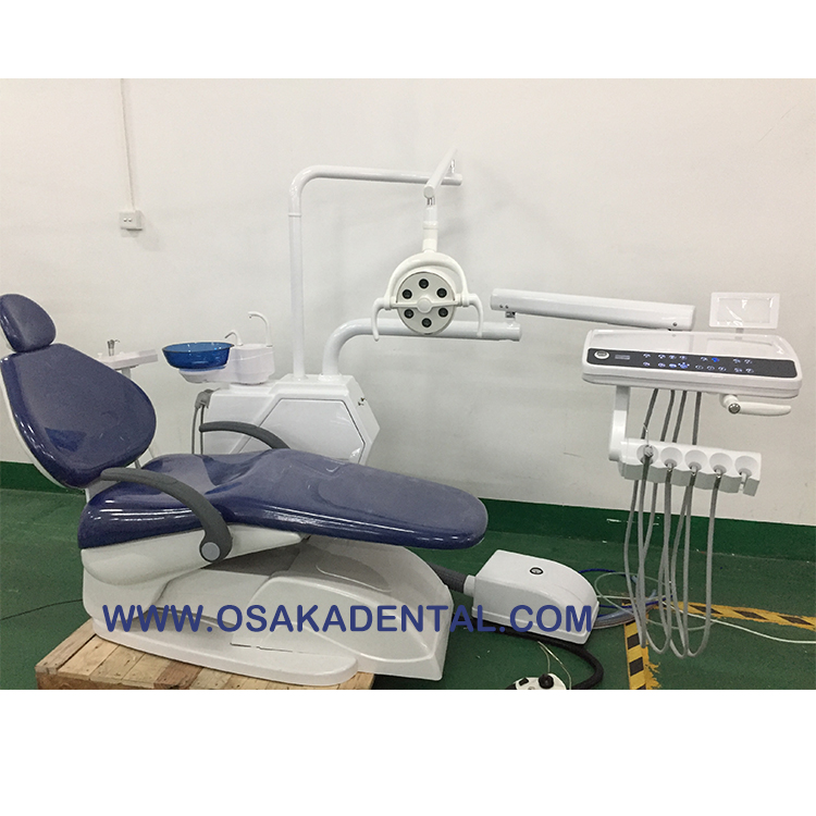 VENTAJAS Luz LED en el gabinete, más conveniente para verificar la máquina, otras fábricas no tienen Película X con sensor, otras fábricas no tienen 9 momeries 6 luces LED Botón táctil instrumento bandeja control systerm Panel de control auxiliar con portaherramientas de 4 ranuras Pedal multifuncional ESPECIFICACIONES Tubo de pieza de mano de alta velocidad con conector 2 agujeros / 4 agujeros 2 JUEGOS Tubo de pieza de mano de baja velocidad con conector 2 orificios / 4 orificios 1 SET Jeringa de 3 vías agua fría y caliente 1 SET Succión de agua 1 SET Eyector de saliva 1 SET Lámpara de operación 6 LED 1 SET X-film viewer 24V, con sensor 1 SET Posición ajustable con 9 momeries 1 SET Sistema de calefacción y agua purificada 1 SET Escupidor movible de vidrio / cerámica 1 SET Pedal mutilfunction 1 SET Cojín sanitario sin costuras YES Bandeja auxiliar con botón de control Tipo táctil SÍ Apoyabrazos DOBLE Taburete de dentista 1 SET